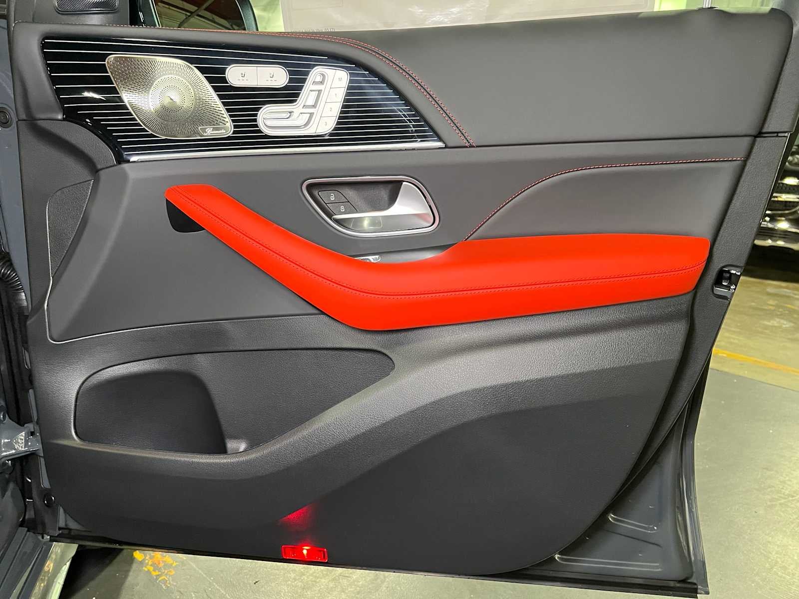 Heated Leather Seats, Moonroof, Nav System, Power Liftgate, Panoramic Roof, Full-Time 4MATIC® All-Wheel, Hitch, WINTER PACKAGE, AMG® PERFORMANCE STEERING WHEEL IN N. MANUFAKTUR BLACK PIANO LACQUER FLOWIN. AMG® NIGHT PACKAGE, DRIVER ASSISTANCE PACKAGE, ALL-SEASON FRONT & REAR FLOORMATS, HEATED REAR SEATS, CLASSIC RED/BLACK, EXCLUSIVE NAPPA LE. TRAILER HITCH, MANUFAKTUR SIGNATURE SILICON GREY, WHEELS: 22 AMG® CROSS-SPOKE MATTE B. CLASSIC RED/BLACK, EXCLUSIVE NAPPA LEATHER UPHOLSTERY. MANUFAKTUR Signature Silicon Grey exterior and Classic Red/Black interior.