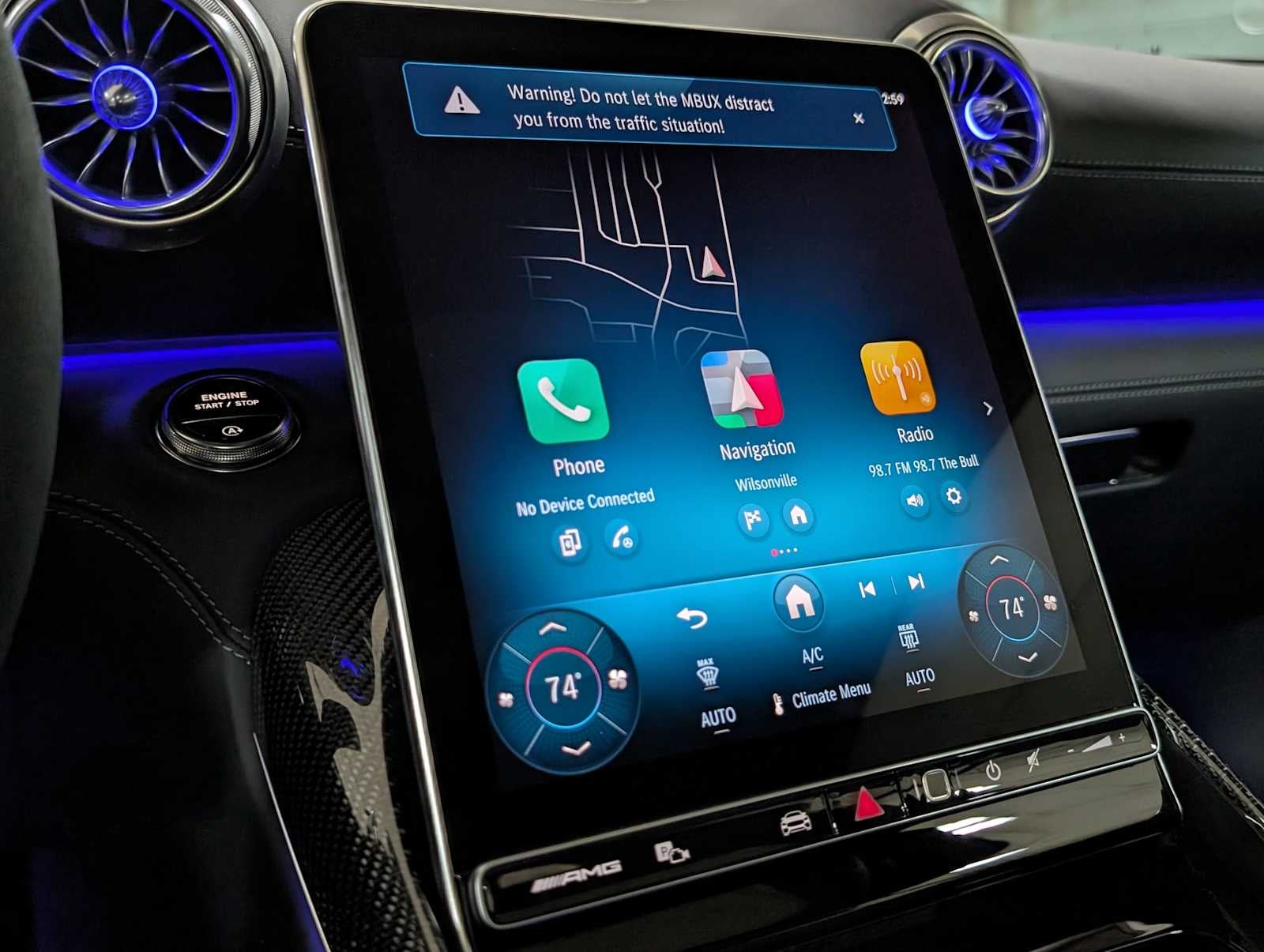 - Radio: MBUX Infotainment & Navigation System -inc: 11.9" central media display, Hey Mercedes voice control, Bluetooth® connectivity, SiriusXM radio All-Access w/trial period and smartphone integration w/Apple CarPlay and Android Auto The GT does not feature AM radio.