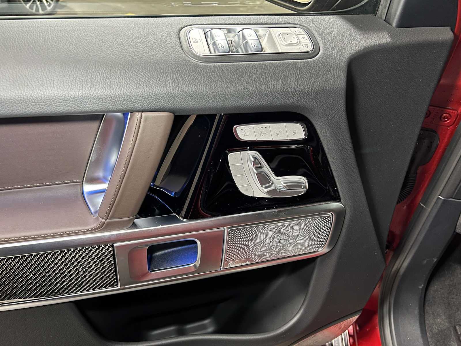 NAV, Sunroof, Heated Leather Seats, Full-Time All-Wheel, Turbo, Alloy Wheels, Tow Hitch, WHEEL LOCKING BOLTS, Rear Air. MANUFAKTUR Exclusive Cardinal Red Magno exterior and Espresso Brown/Black interior, AMG® G 63 trim.