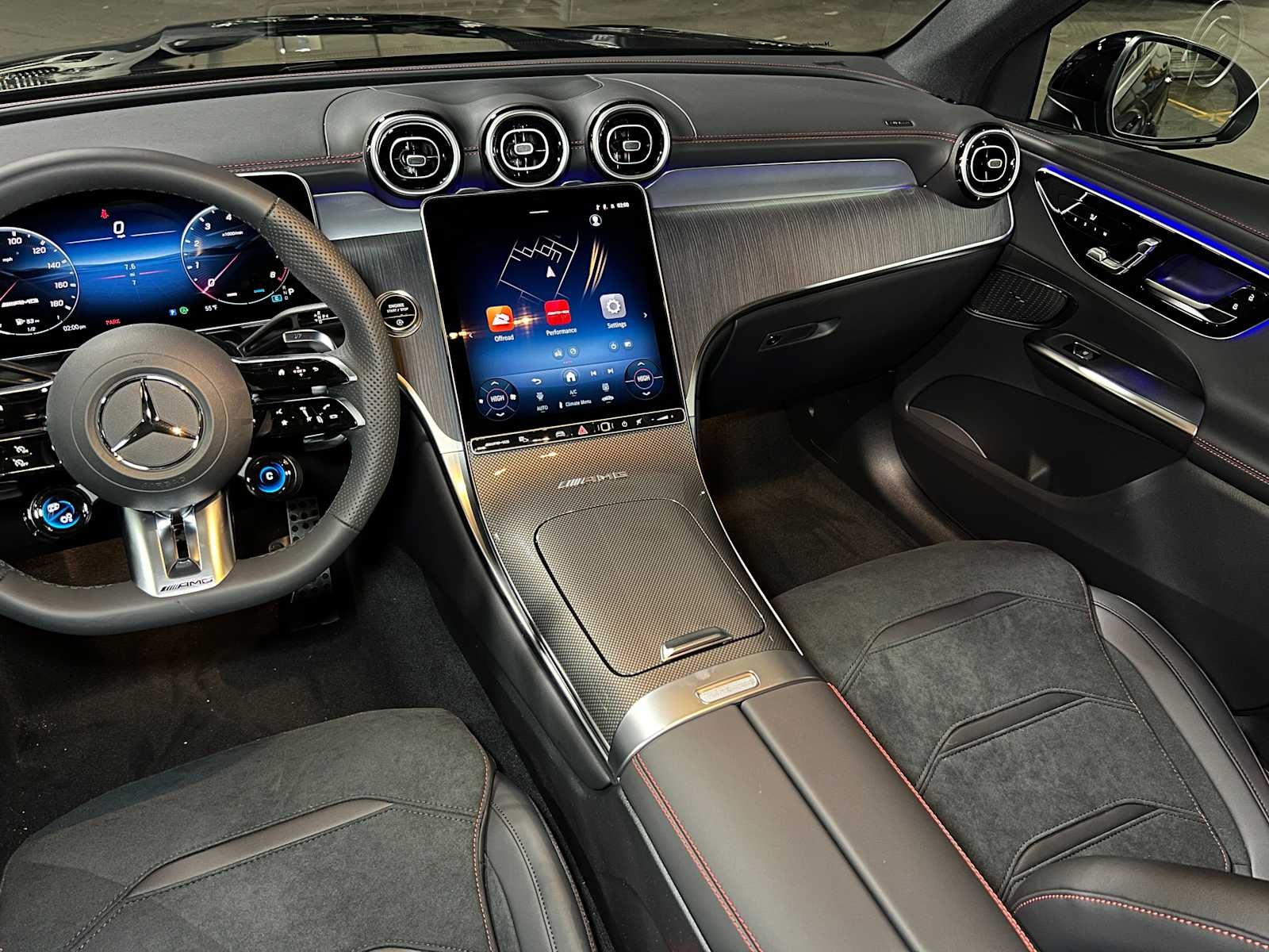 Navigation, Moonroof, Heated Seats, Panoramic Roof, Full-Time 4MATIC® All-Wheel, Turbo Charged, Aluminum Wheels, MBUX NAVIGATION, Power Liftgate. AMG® GLC 43 trim, Black w/Red Accents interior.