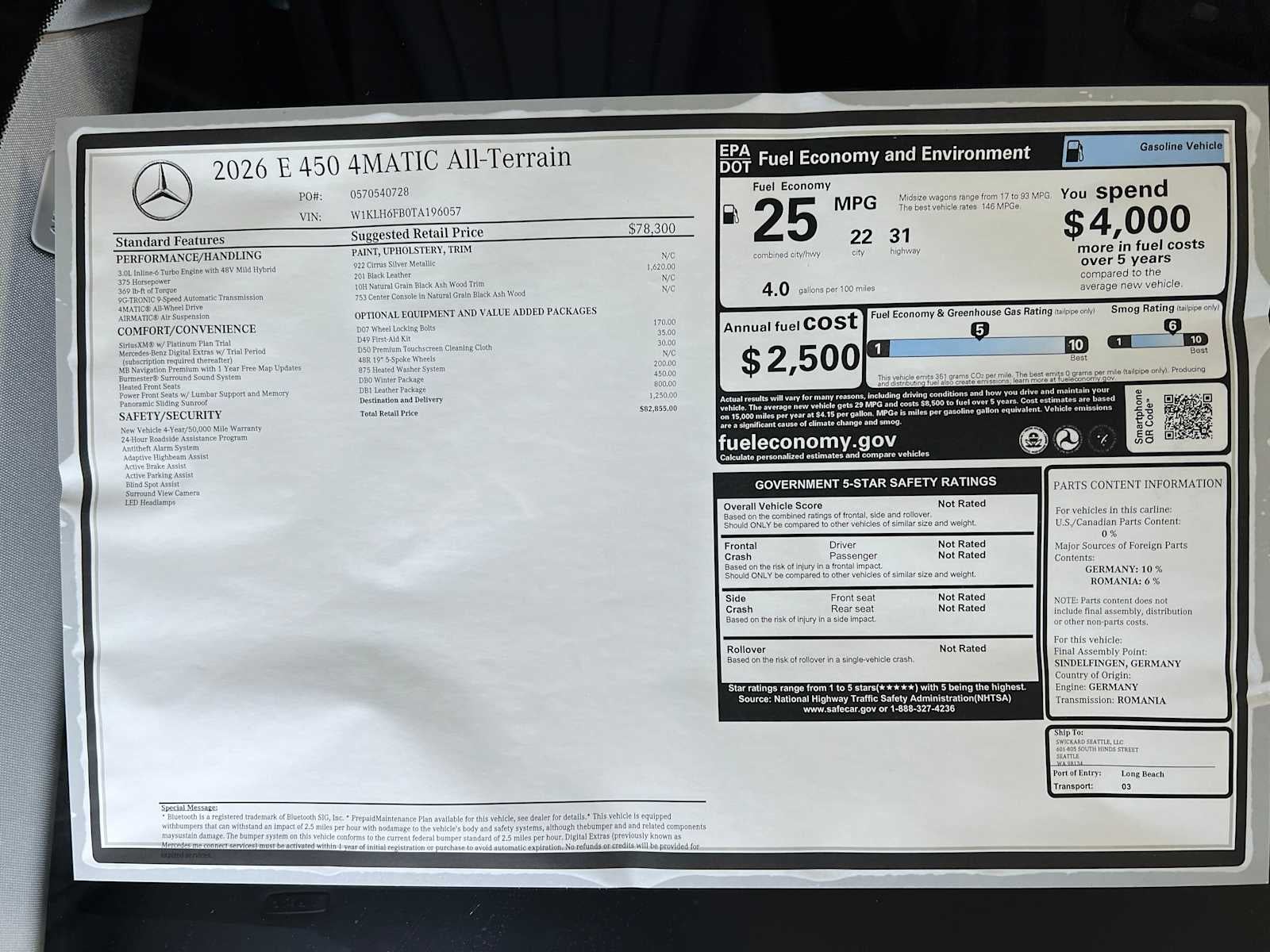 - Vehicle Name: Mercedes-Benz E-Class