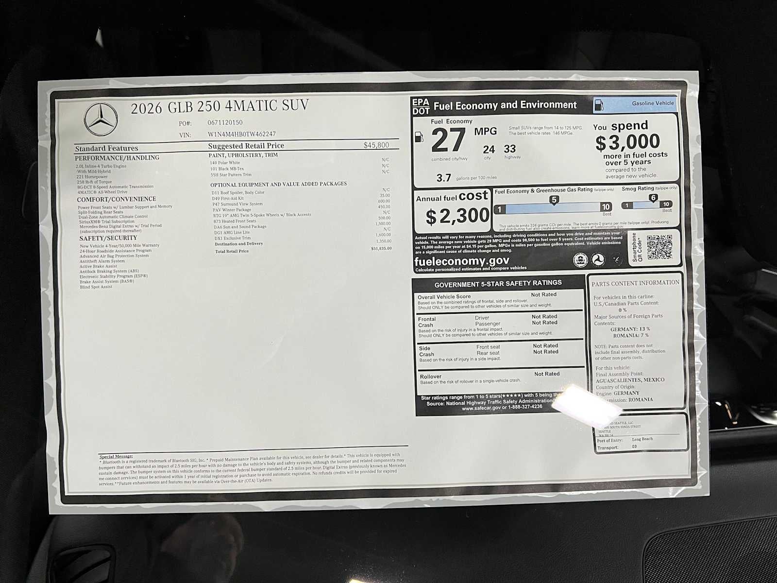 - Vehicle Name: Mercedes-Benz GLB