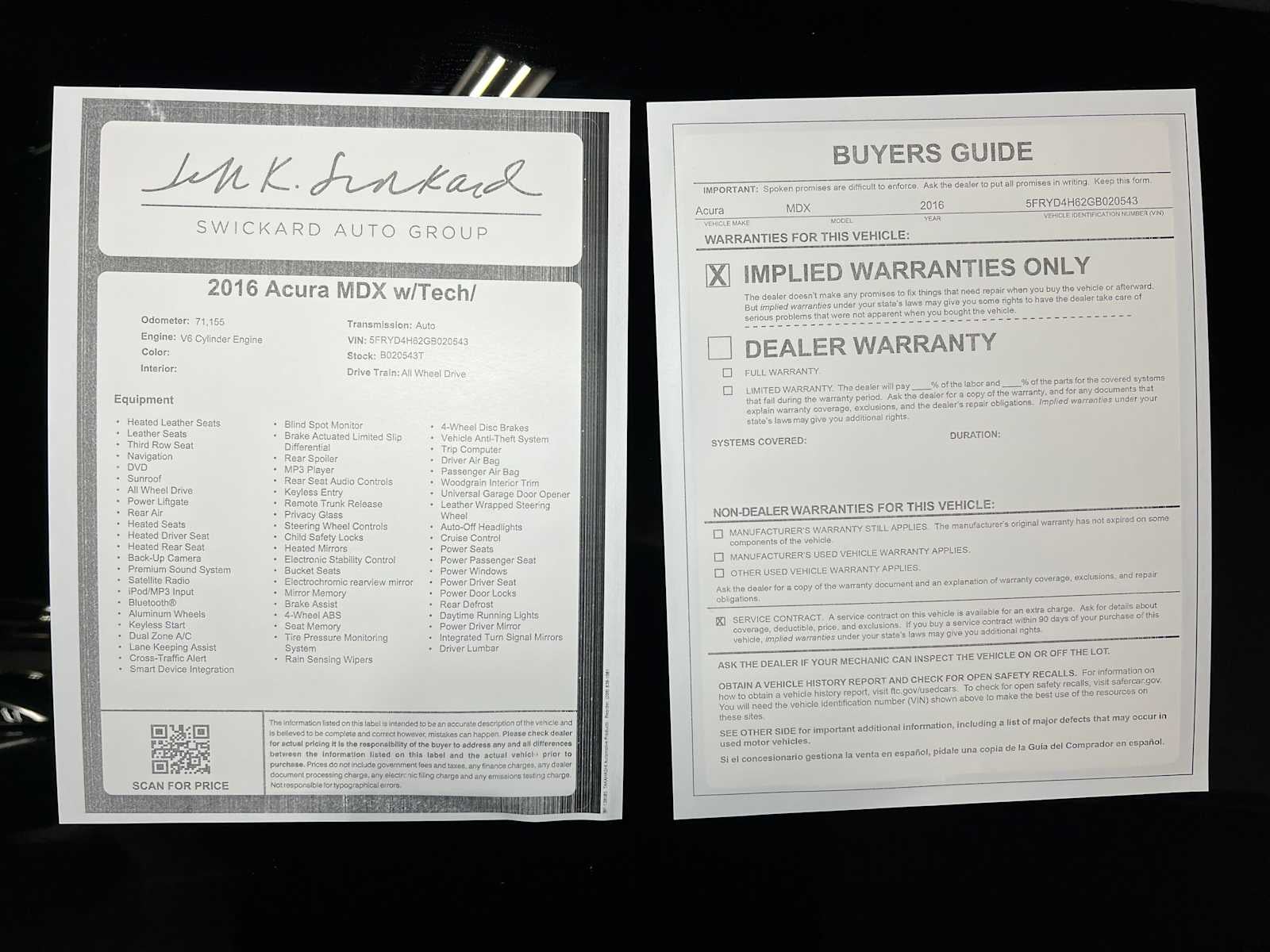 - Vehicle Name: Acura MDX