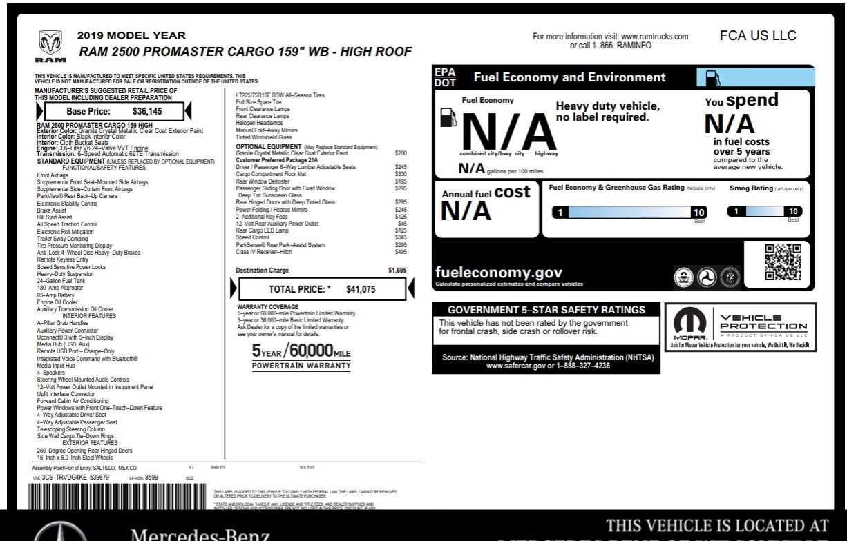 - Vehicle Name: Ram ProMaster Cargo Van