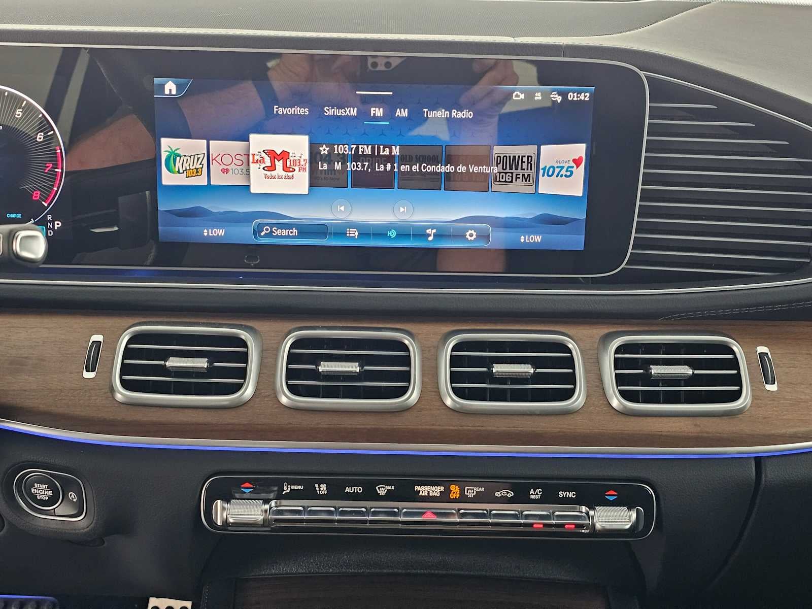 - Radio: Burmester Surround Sound System -inc: Dolby Atmos, music streaming, sound personalization, 13 speakers, 590-watt amplifier, Frontbass technology, voice control w/Natural Language Understanding, wireless Apple CarPlay and Android Auto, 12.3" media touchscreen display, MB navigation w/live traffic and map updates and SiriusXM radio
